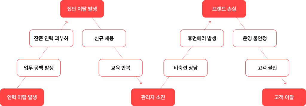 근본적인 운영 구조를 바꾸지 않으면, 인력 소진 → 품질 저하 → 고객 이탈의 악순환은 계속됩니다