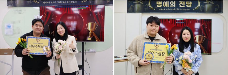 CS쉐어링은 매월 명예의 전당을 개최하여 우수한 직원들에게 감사하는 자리를 마련하고 있습니다.