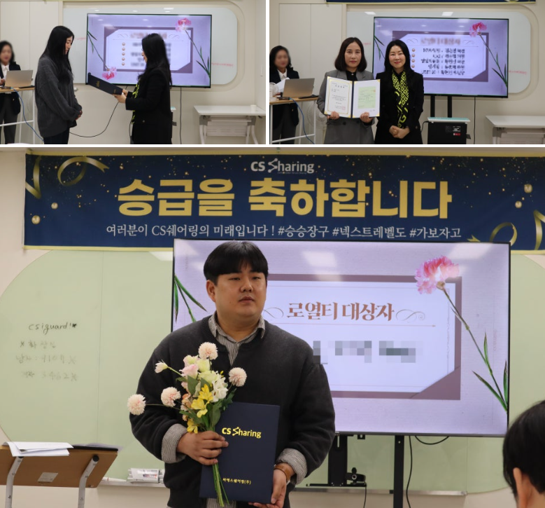 CS쉐어링의 승급식은 단순한 직급 승진이 아니라 자기 성장의 이정표입니다.