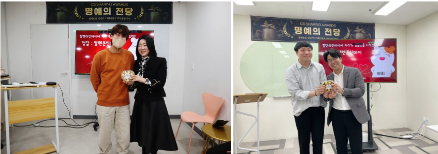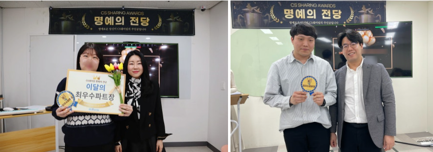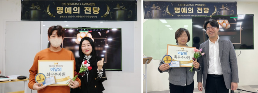 CS쉐어링은 매월 명예의 전당을 개최하여 우수한 직원들에게 감사하는 자리를 마련하고 있습니다.