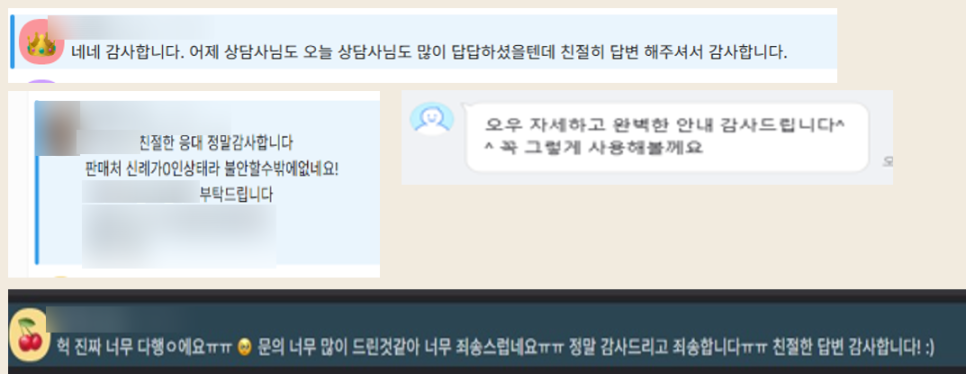 이 칭찬 사례들은 칭찬콜 콘텐츠로 더 자세히 보여드리도록 하겠습니다 😀