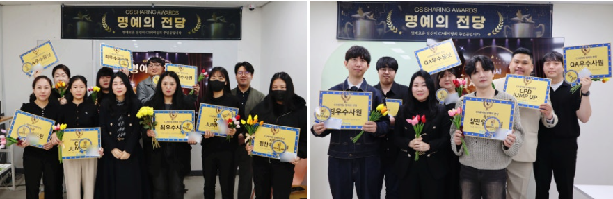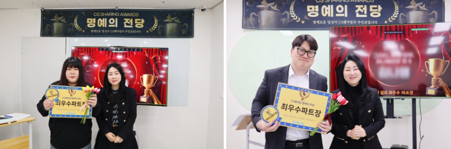 CS쉐어링은 매월 명예의 전당을 개최하여 우수한 직원들에게 감사하는 자리를 마련하고 있습니다.