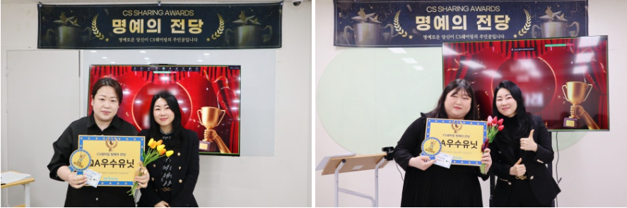마곡센터의 파트장님은 처음으로 상을 받는다고 하셨는데요, 그래서 그런지 그 동안의 노력들과 힘들었던 부분을 위로받는 것 같다고 하셨습니다. QA점프업과 최우수사원까지 파트장님의 권역에서 수상자가 나오게 되어 더 보람참을 느끼신다고 하네요~