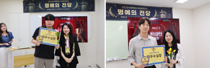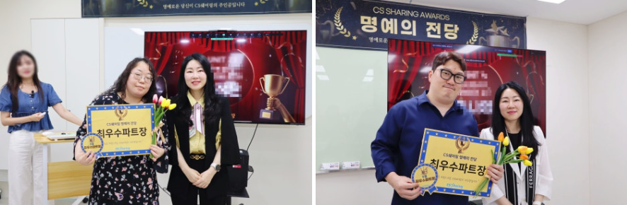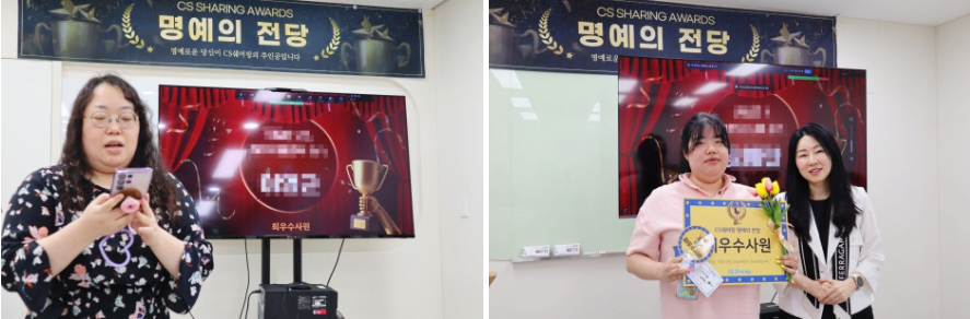 CS쉐어링은 매월 명예의 전당을 개최하여 우수한 직원들에게 감사하는 자리를 마련하고 있습니다.