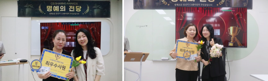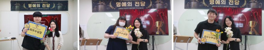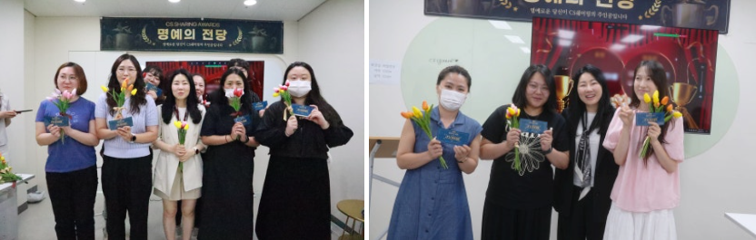 CS쉐어링은 매월 명예의 전당을 개최하여 우수한 직원들에게 감사하는 자리를 마련하고 있습니다.