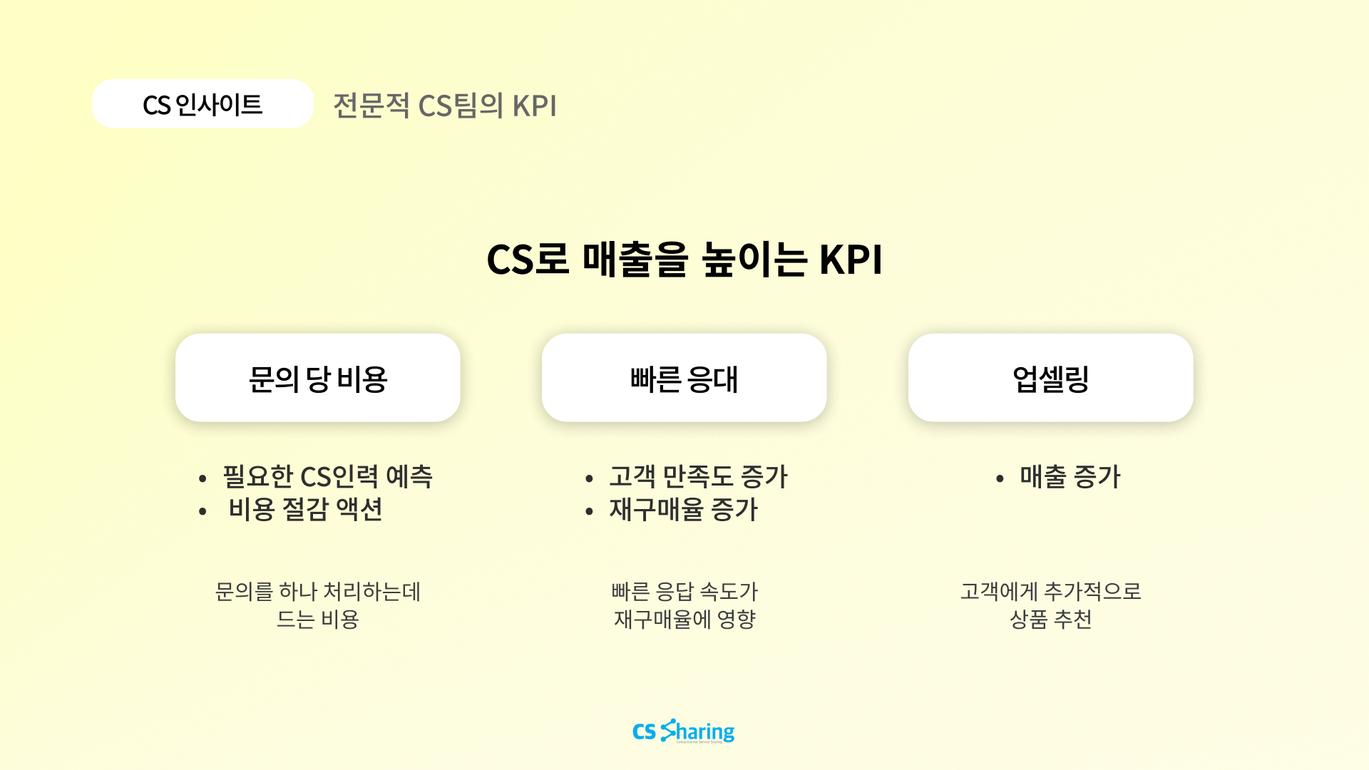 따라서 전문적인 CS란 처리량뿐만 아니라 얼마나 제대로, 만족스럽게 응대했는지를 모두 고려해야 합니다. 또한 매출이 늘어나는 등의 성과도 함께 있어야 하죠!